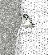 今日のスケッチは15年前の北海道の旅で日高本線プラットホーム縁石で毛づくろいをしていたスズメです。