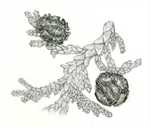今日のスケッチは、冬も葉を残すスイカヅラの黒い実たちです。